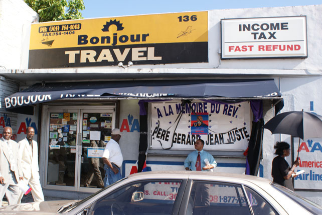 The Funeral Walk , passing by Haitian businesses on 54th Street June 6, 2009 after Church memorial during final walk to Veye Yo behind hearse that carried Father Jean Juste's body. *